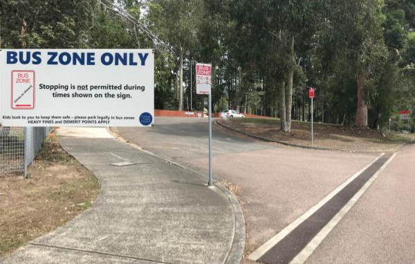 which means that the area is restricted for bus use only during these times, no cars are to enter the bus bay area to drop off students.